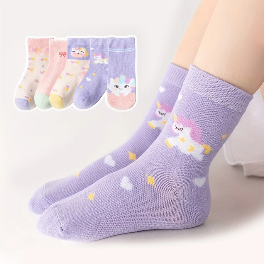 Brighten your child’s wardrobe with these adorable 5-pair unicorn socks designed for girls and babies. Each pair features cute cartoon unicorn patterns and sweet bow details that bring fun and charm to any outfit. Made from soft, breathable materials, these mid-calf socks provide all-day comfort for daily wear, playtime, or outings. The stretchy design ensures a snug fit for toddlers and young kids, while the vibrant colors make them easy to match with dresses, skirts, and casual outfits. Perfect for everyday use, gifting, or adding a magical touch to your little one’s sock collection.