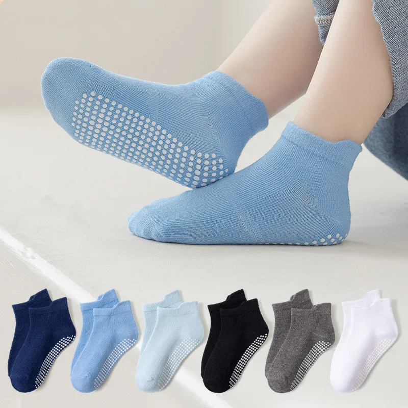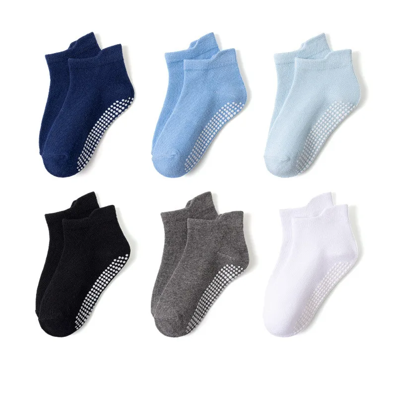 Keep little feet safe and comfortable with these 6 Pairs of Non-Slip Kids Socks, designed for infants and toddlers aged 0–5 years. Made with soft, breathable fabric, these ankle-length socks feature anti-slip grip bottoms that provide added traction on tile, wood, and other smooth floors—perfect for babies learning to crawl, stand, or walk.