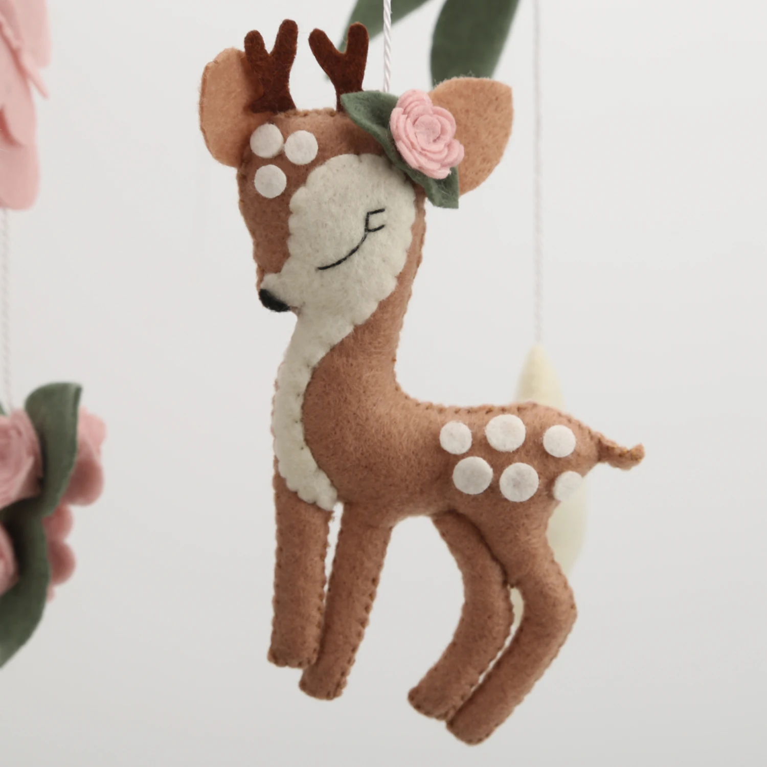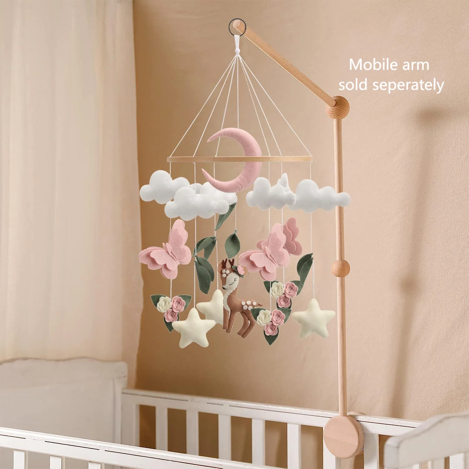 Create a sweet and calming nursery with this Deer Butterfly Crib Mobile. Featuring an adorable deer surrounded by delicate butterflies and soft flowers, this mobile adds a gentle woodland charm perfect for a baby girl’s room. Designed to hang above the crib, it provides soothing visual stimulation while enhancing the overall nursery décor. Ideal as a newborn gift, baby shower present, or finishing touch to a floral or forest-themed nursery. Crafted with soft materials and gentle colors to create a peaceful, cozy atmosphere for your little one.