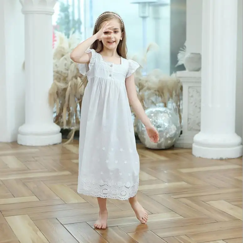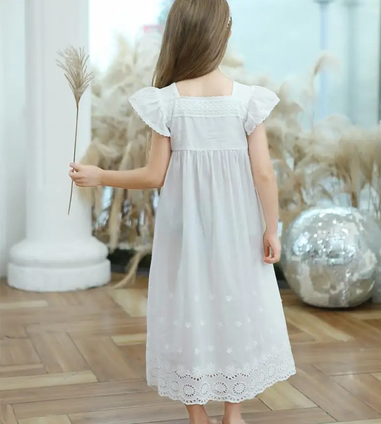 Dress your little one in comfort and style with this 100% cotton embroidered nightgown. Featuring a charming square collar and delicate cutout details, it’s perfect for home wear or bedtime. Soft, breathable fabric ensures all-night comfort, while the elegant design makes it ideal for girls aged 3–12 years. A beautiful blend of practicality and princess-inspired style for everyday wear.