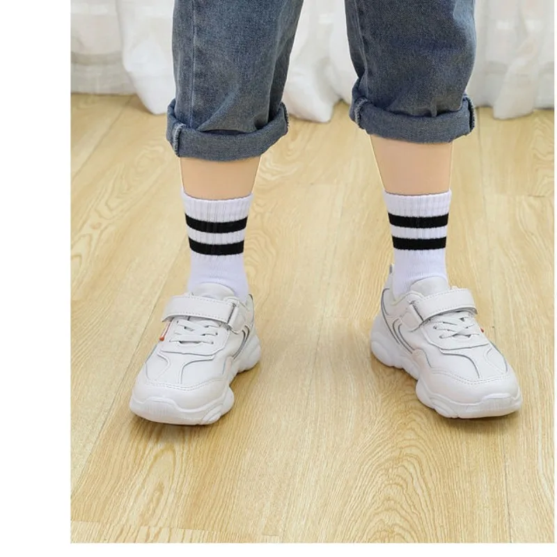 This 5-pair set of kids’ school socks features clean, pure solid colors that match any uniform or outfit. Made from soft, breathable cotton, they keep feet comfortable throughout the day. The fabric provides excellent ventilation to reduce sweating during classes or sports. Each pair has a gentle stretch that fits securely without slipping. The classic grey, black, and white colors offer maximum versatility for both boys and girls. Durable stitching ensures long-lasting wear even with daily use. The socks maintain their shape after multiple washes. Their simple and stylish design makes them suitable for school, sports, and casual outings. Lightweight comfort makes them ideal for year-round wear. This set is a reliable choice for parents seeking quality, comfort, and practicality in children’s socks.