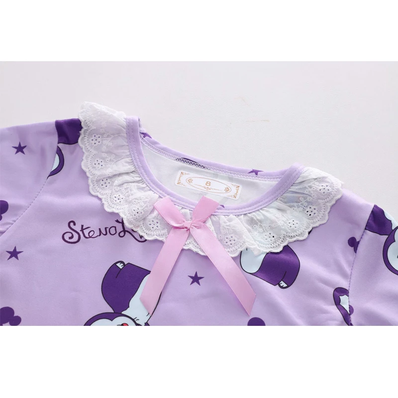 This adorable Kuromi nightgown is designed for baby girls and kids, featuring a cute cartoon print that makes bedtime fun and cozy. Made from soft, breathable fabric, it’s perfect for summer nights and comfortable all-day lounging. The short-sleeve, loose-fit design allows easy movement and keeps kids cool while sleeping. Ideal for ages 7–12, this pajama dress combines comfort, cuteness, and everyday practicality for your little one’s nighttime routine.