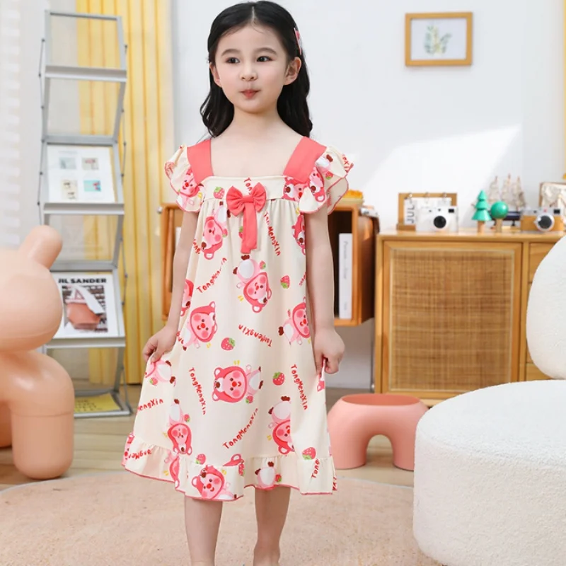 Keep your little one cool and comfortable with this summer girls’ nightgown featuring charming suspender straps. Made from soft, breathable fabric, it ensures a cozy and gentle feel on delicate skin. The cute design and lightweight material make it perfect for bedtime or relaxing at home. Ideal for children who love both style and comfort, this nightdress combines practicality with playful charm.