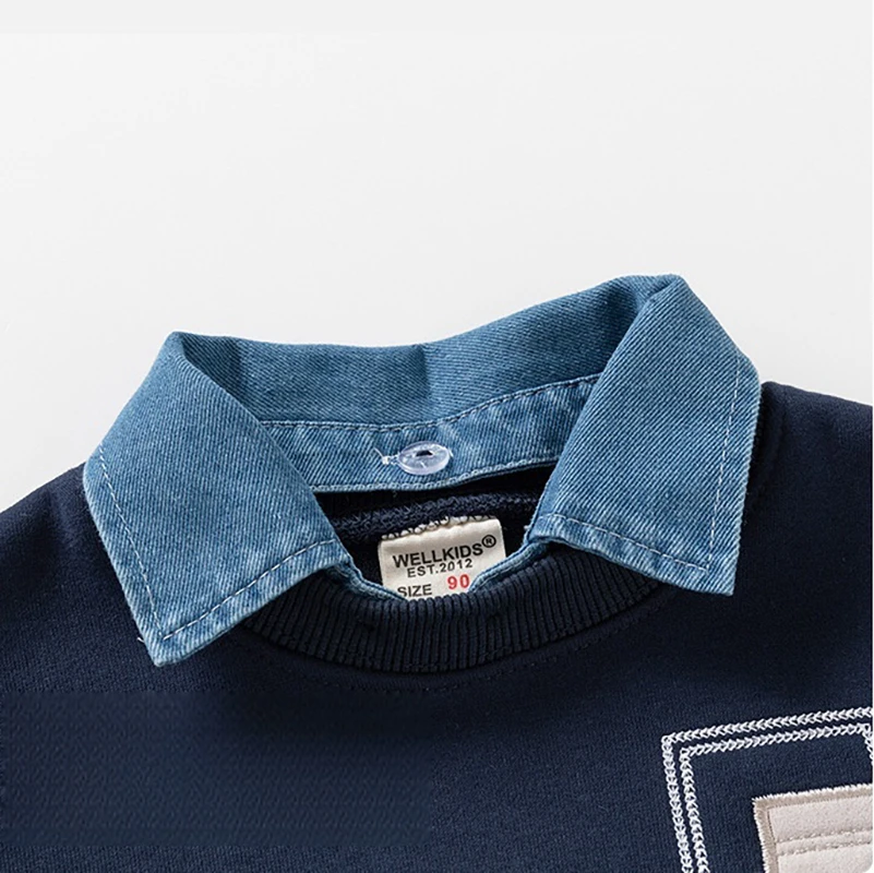 Keep your child warm and stylish with this boys layered fleece sweatshirt designed for autumn and winter wear. Featuring a trendy denim-style collar and a functional patch pocket, this pullover creates a fashionable layered look without extra bulk. The soft fleece lining provides cozy warmth, while the comfortable fit allows easy movement for everyday activities. Perfect for school, outdoor play, or casual outings, this sweatshirt is a practical and stylish choice for growing kids.