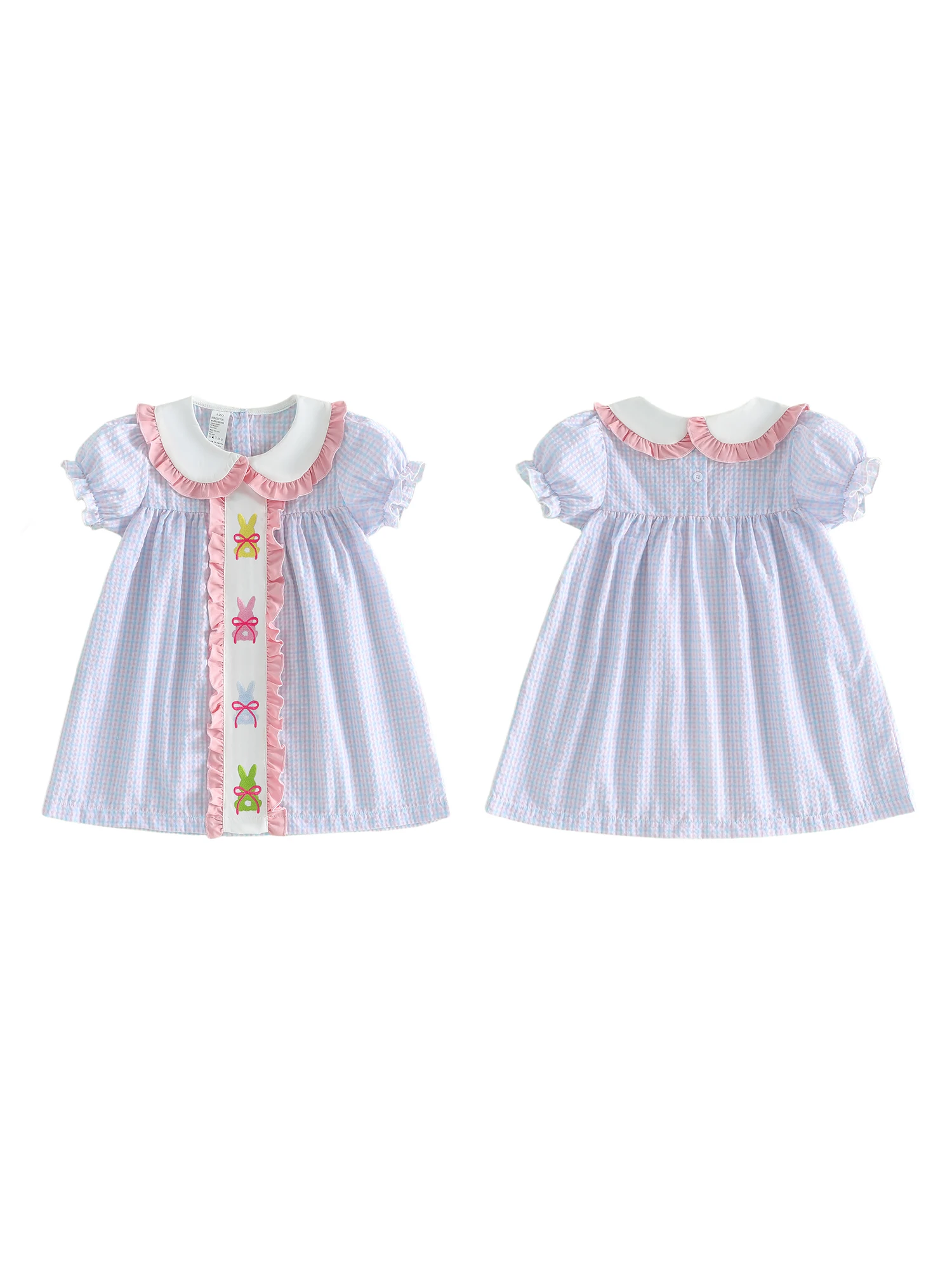 Celebrate spring in style with this adorable girls Easter dress featuring sweet bunny embroidery and a classic plaid pattern. Designed with short sleeves for all-day comfort, this casual princess dress is perfect for Easter gatherings, family photos, parties, and everyday wear. The charming details and soft fabric make it both fashionable and comfortable for toddler fashionistas. A delightful springtime outfit that’s as cute as it is cozy.