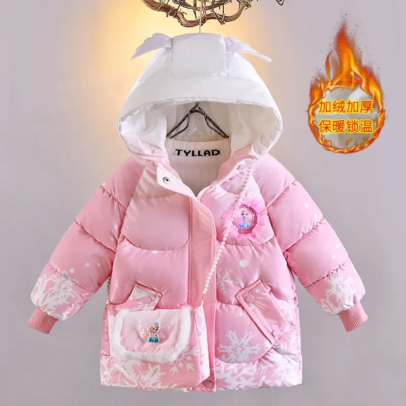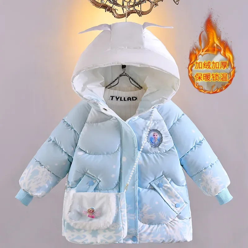 Make winter magical with this Frozen Elsa hooded down jacket for baby girls and children. Designed with a cute princess theme, this warm plush coat features soft insulation to keep kids cozy in cold and windy weather. The hooded windbreaker style offers extra protection, while the matching bag adds a fun and practical touch. Perfect for daily wear, school, outdoor play, or princess-themed outfits, this Elsa-inspired winter coat combines warmth, comfort, and fairytale style that little girls will love.