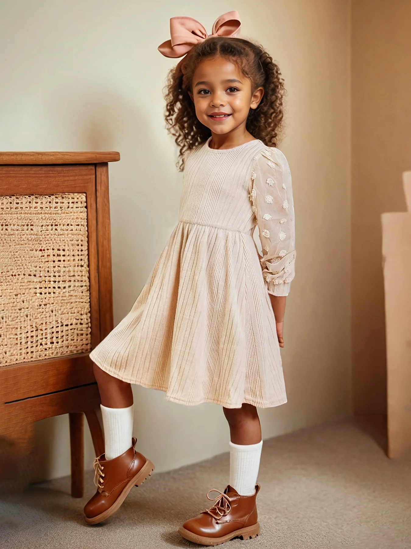 This stylish INS-inspired knitted dress is perfect for girls aged 3–10 years, combining comfort with sweet fashion details. Designed with long puff sleeves, a classic round neckline, and playful chiffon accents with fur ball decoration, it creates a charming and modern look. The soft knit fabric keeps kids warm and cozy, making it ideal for autumn and winter wear. Easy to match with leggings or boots, this versatile dress works well for home, outings, school, or casual gatherings, offering an effortless all-match style for everyday fashion.