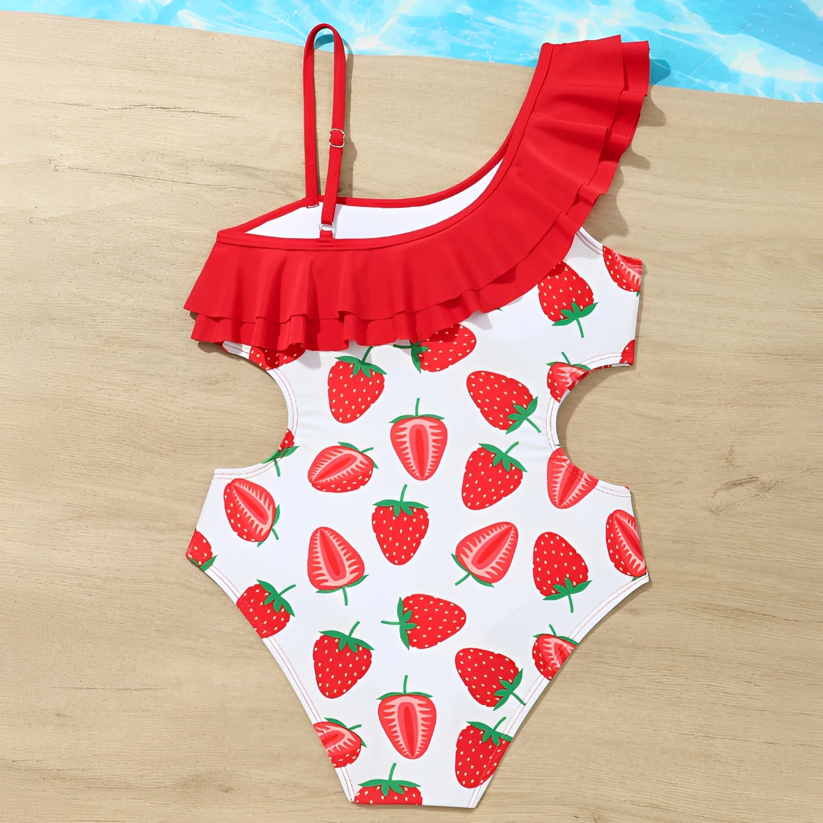 Make summer extra sweet with this 2026 Girls Printed Ruffle One-Piece Swimsuit! Designed with adorable prints and charming ruffle details, this kids swimwear adds a playful touch to every beach or pool day.