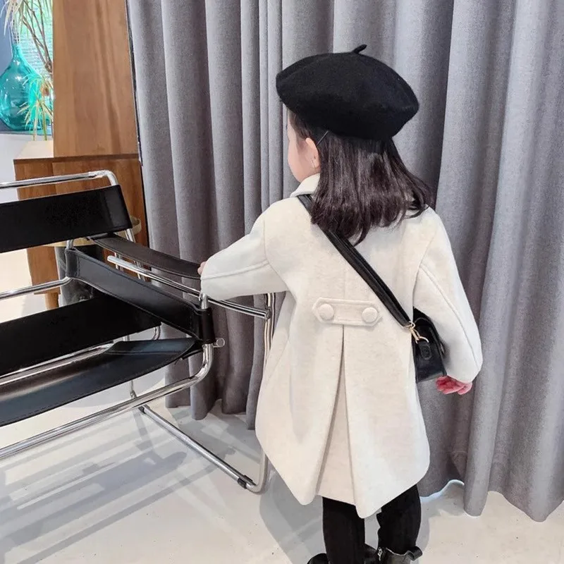This girls’ medium-to-long woolen coat is designed for warmth and style during autumn and winter. Featuring a classic double-breasted design, it offers a neat, elegant silhouette perfect for babies and young girls. The soft wool-blend fabric provides cozy insulation, while the tailored cut allows comfortable movement for daily wear. Ideal for casual outings, school, or special occasions, this children’s coat combines fashion and practicality, making it a must-have winter outerwear piece for your little one.