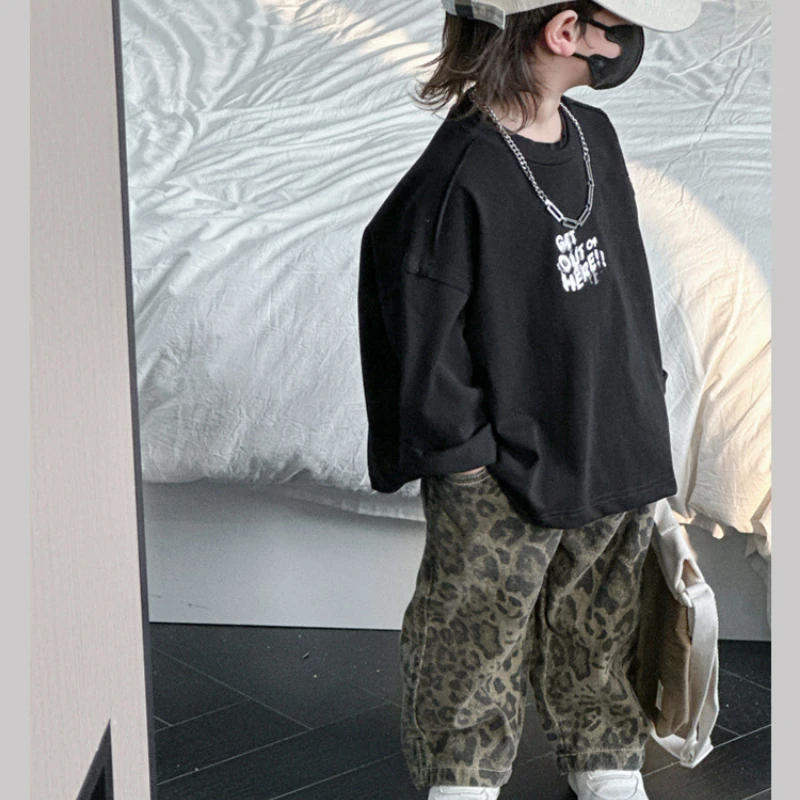 Bring bold street style to your child’s wardrobe with these hip hop–inspired leopard print jeans. Crafted from soft, breathable pure cotton, these loose-fit pants offer all-day comfort for active kids. The trendy leopard pattern adds a fun, fashionable edge, while the relaxed silhouette makes them easy to wear across all four seasons. Perfect for casual outings, playtime, or everyday streetwear looks, these children’s jeans combine comfort, durability, and standout style.