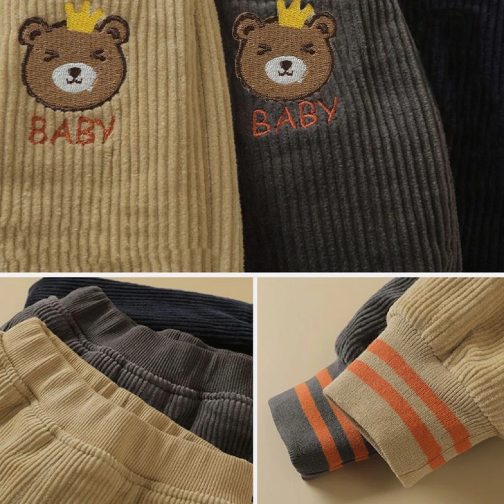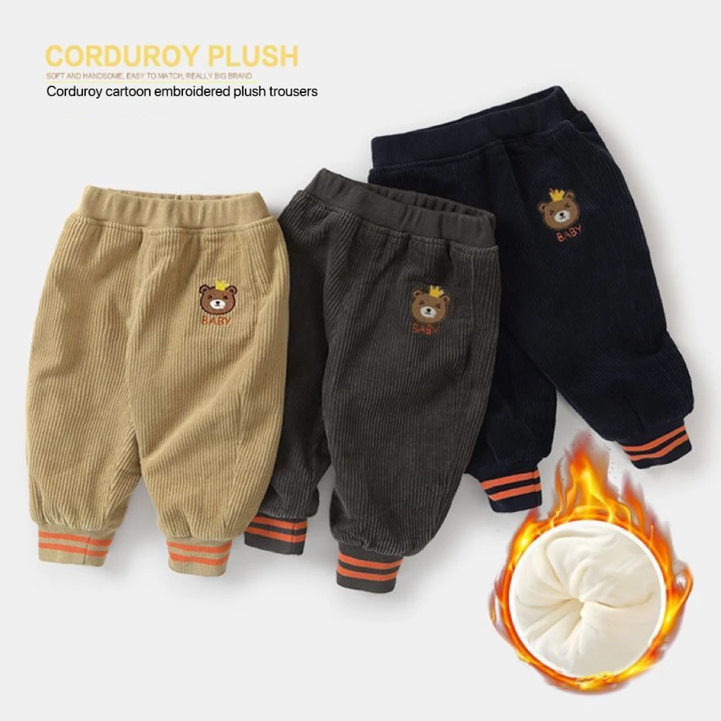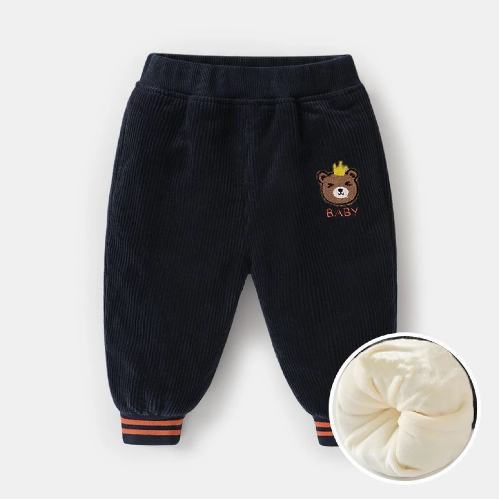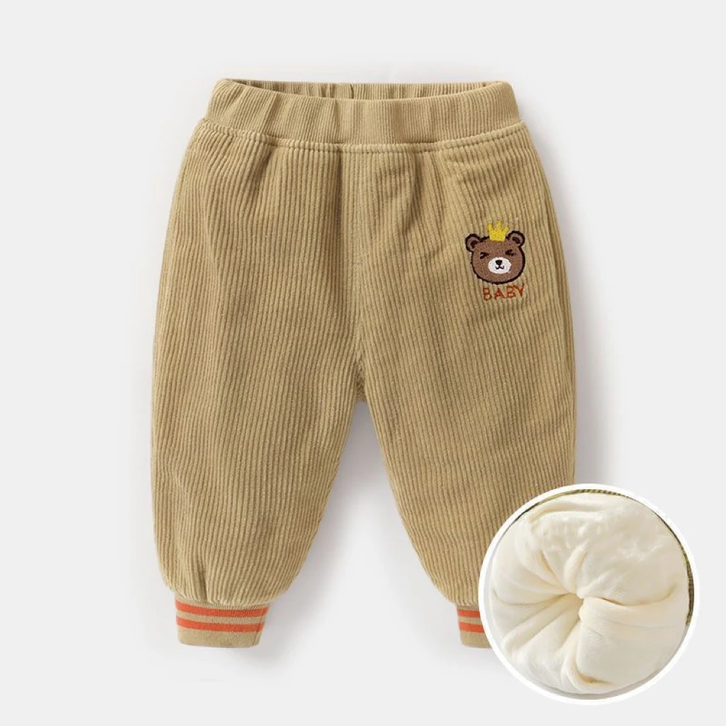 Featuring an adorable little bear cartoon design, these pants add a playful touch to everyday outfits. Perfect for school, outdoor play, or casual wear, these durable winter trousers combine warmth, style, and practicality—making them a must-have for children during the chilly season.