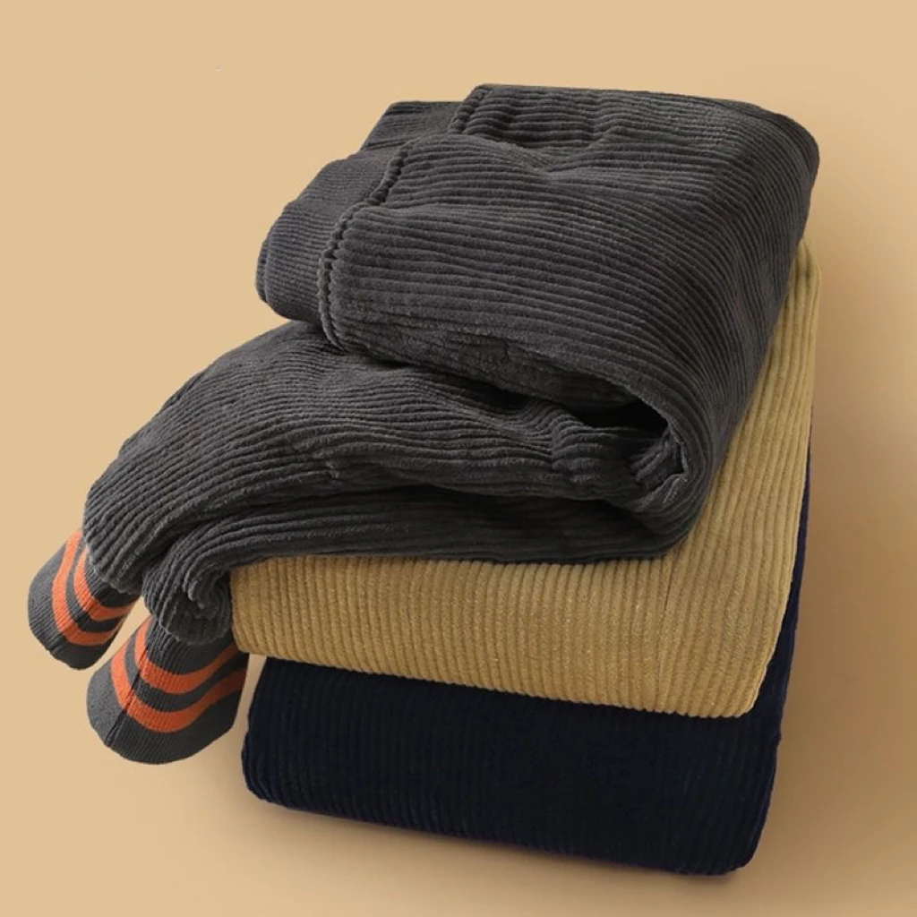 Keep kids cozy and cute all winter with these Kids Winter Corduroy Pants. Made from soft velvet corduroy fabric with a thick plush lining, these trousers provide excellent warmth and comfort for cold weather. Designed for boys and girls, the mid-waist fit and baggy silhouette allow easy movement and all-day comfort.