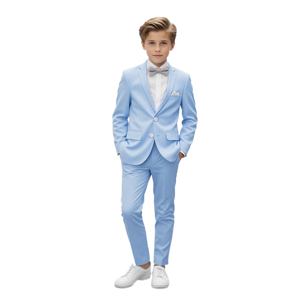 Dress your little gentleman in timeless style with this 2-Piece Boys Formal Suit Set. Featuring a single-breasted blazer and matching pants, this slim-fit outfit is perfect for weddings, parties, ceremonies, and special occasions. Made from durable, easy-care polyester, it offers a polished look with all-day comfort. Ideal for young gents who need a sharp and elegant appearance for formal events.