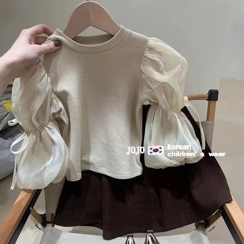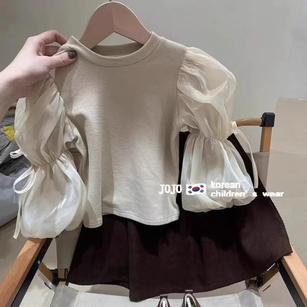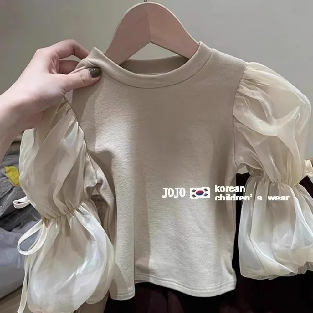 This adorable girls top features a classic round neckline and soft puff sleeves for a sweet, fashionable look. Made with lightweight mesh yarn fabric, it is breathable and comfortable—perfect for spring and mild weather. Designed for babies and young girls, this versatile blouse-style T-shirt pairs easily with skirts, jeans, or leggings for everyday wear, outings, or special occasions. Stylish, cozy, and easy to wear, it’s a must-have addition to any child’s seasonal wardrobe.