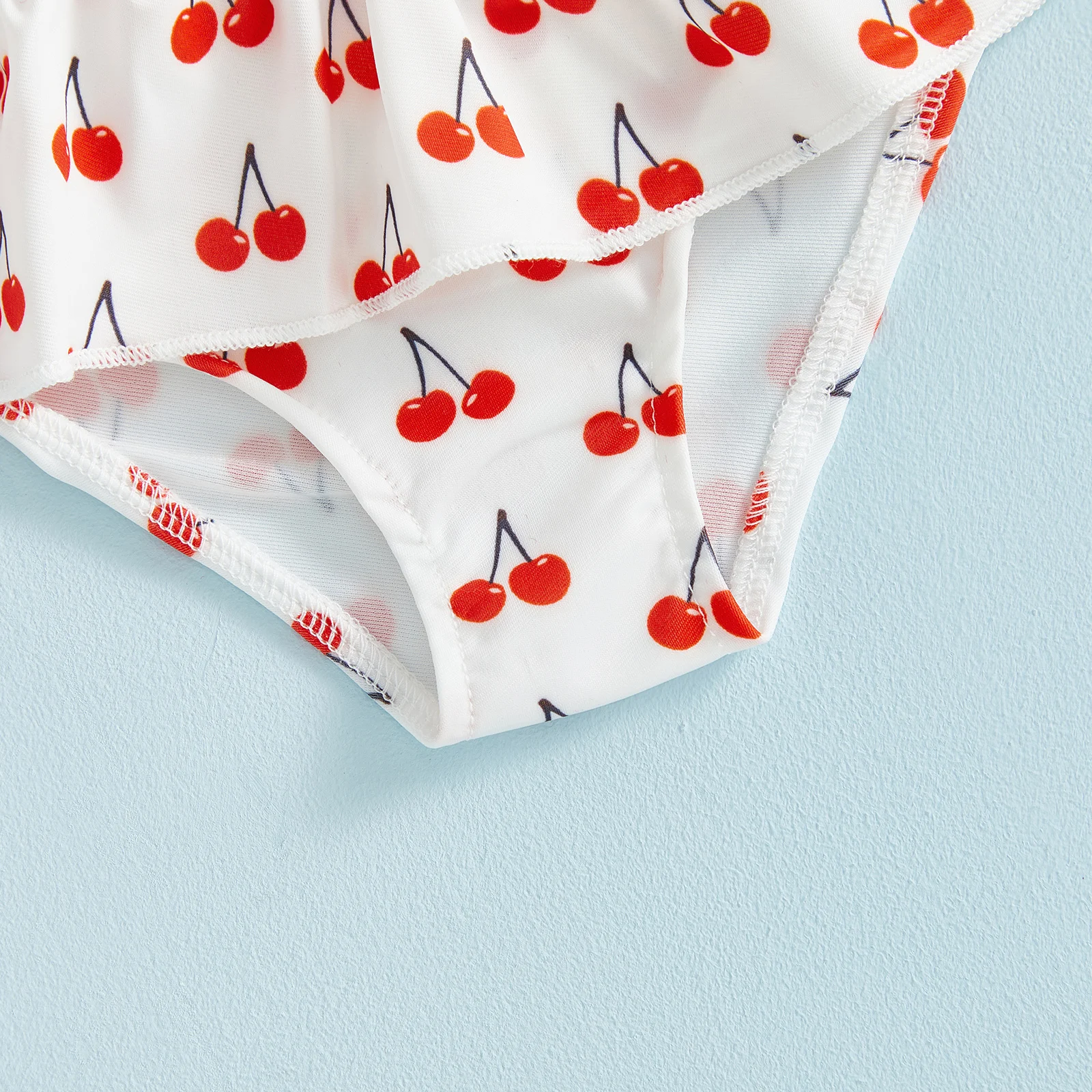The playful cherry print adds a bright, cheerful touch, while the soft, stretchy fabric ensures comfort for all-day wear at the pool, beach, or splash pad. The lightweight material is breathable and quick-drying, making it perfect for warm summer adventures.