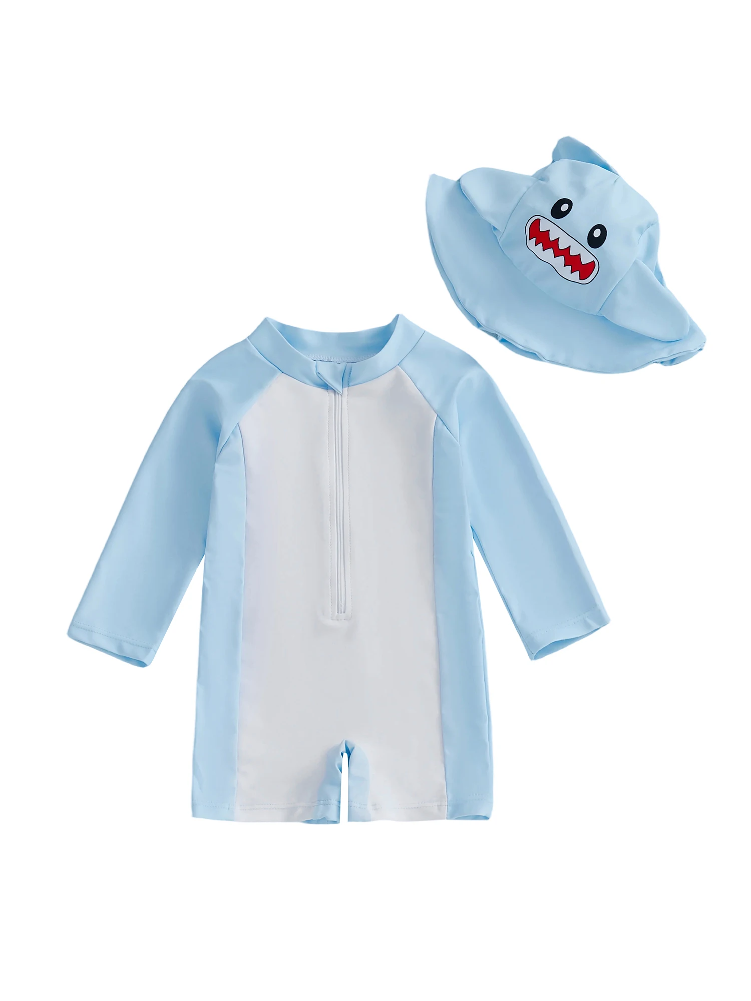 Crafted with UPF 50 sun protection fabric, this swimwear helps shield delicate skin from harmful UV rays during beach days, pool parties, and family vacations. The matching hat adds extra coverage while completing the adorable look.