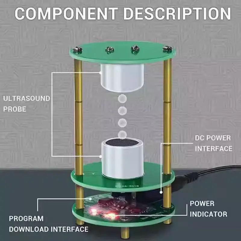 Powered by a 12V supply, the kit is perfect for students, hobbyists, and makers interested in acoustics, electronics, and STEM experiments. Assemble the circuit yourself to better understand ultrasonic principles, wave interference, and precision control. Ideal for classrooms, science fairs, or personal projects, this levitation device turns complex physics into an exciting, visual experience.
